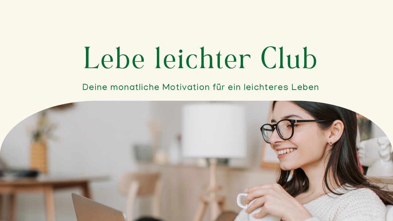 Der Lebe leichter Club ist dein neuer monatlicher Online-Treffpunkt, der dich auf deinem Weg zu einem gesünderen und leichteren Lebensstil begleitet.