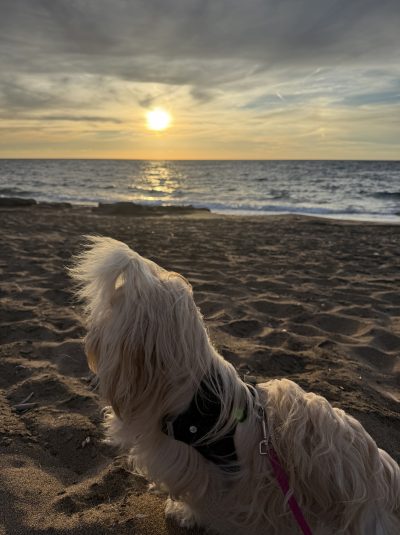 Zeit mit meinem Hund, Bewegung, Meerblick und Sonnenuntergänge am Meer, mit meiner neuen Vespa fahren, Stricken, gute Beziehungen – dieser Bereich ist stark. Ich glaube, so stark wie noch nie in meinem Leben. Ein Wunsch blieb offen, ich wäre gerne mit unserem VW California zwei Wochen um die Insel gefahren. Ging nicht wegen dem Grundstück. Und wenn ich offen bin. Aufgrund der vielen Camper auf der Insel rückte der Wunsch etwas in den Hintergrund. Daher keine Zehn. Aber das ist schon Jammern auf sehr hohem Niveau.